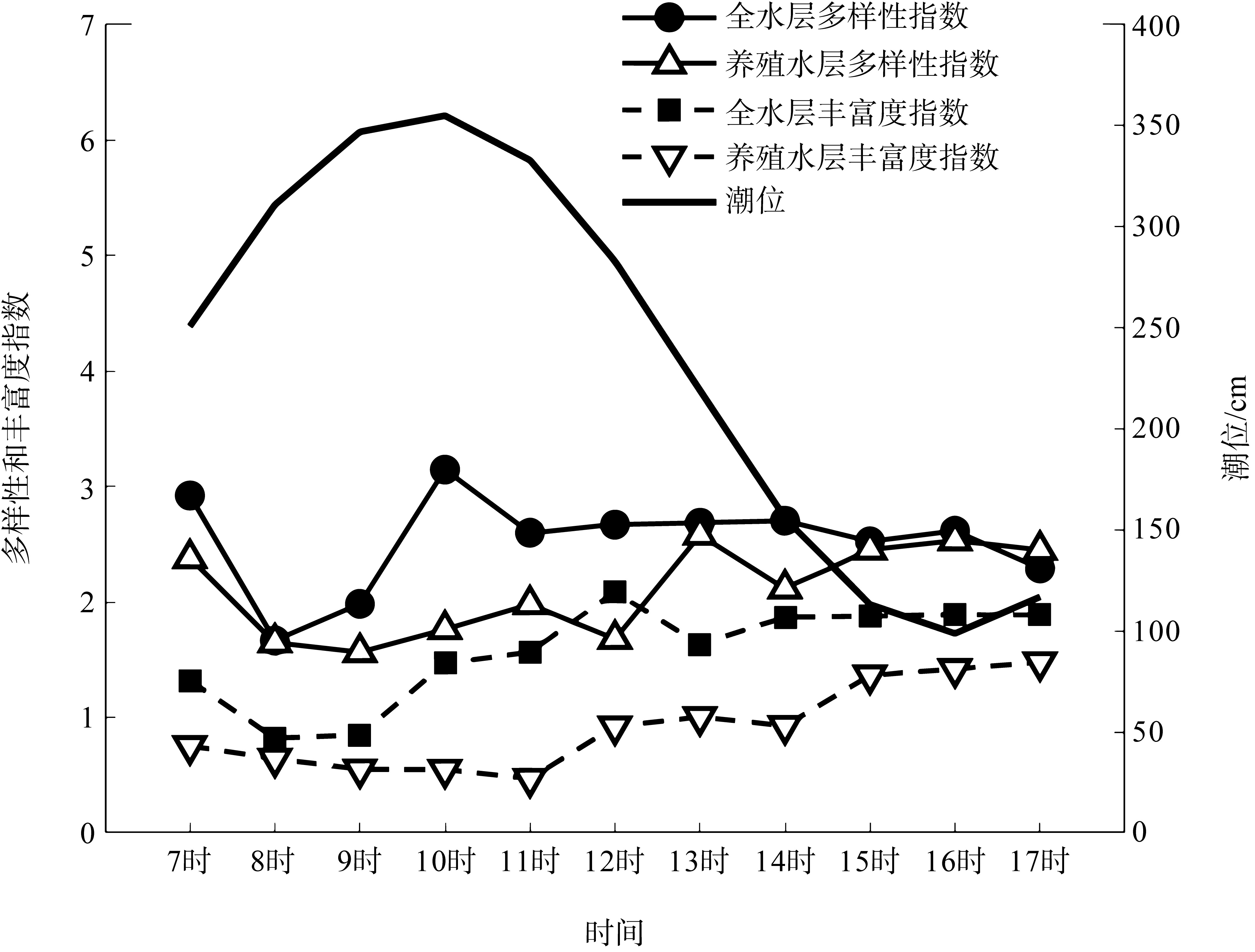 This study integrated net sampling with microscopic examination and an underwater digital holographic particle imaging system (LISST Holo2) to analyze the diurnal dynamics and environmental drivers of phytoplankton communities in suspended mussel raft aquaculture areas near Gouqi Island, Zhejiang Province. Field data collected in August 2023 identified 75 phytoplankton species across 5 phyla and 38 genera, with Noctiluca scintillans and Rhizosolenia styliformis as dominant species, coinciding with a Noctiluca scintillans red tide outbreak. The aquaculture layer exhibited fewer phytoplankton species and lower abundance compared to the entire water column, but demonstrated higher co-occurrence network complexity, greater community stability, and stronger inter-species interactions. Tidal cycles significantly influenced phytoplankton distribution in the entire water column [GAM (generalized additive models) explained 57.4% of variation], while temporal factors dominated abundance fluctuations in the aquaculture layer (P=0.016). The LISST Holo2 detected 34 genera from 3 phyla of phytoplankton, accounting for 89.4% of the taxa identified by net sampling and microscopy. For large-sized phytoplankton (e.g., Noctiluca scintillans), LISST Holo2 showed high consistency with traditional net sampling and microscopy results, with a dominance curve correlation coefficient of R²>0.8. Compared to conventional methods, LISST Holo2 addressed challenges such as laborious sample preservation, delayed data acquisition, and particle size measurement difficulties. This study validates its reliability for large-sized algal monitoring and underscores the roles of mussel filtration pressure and raft-induced hydrodynamic effects in reshaping phytoplankton communities, providing critical insights for optimizing aquaculture practices and advancing marine ecosystem monitoring technologies.