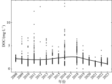 To explore the spatiotemporal changes, trends, and environmental impact factors of dissolved organic carbon (DOC) in Sanya Bay, water physicochemical parameters collected from 2008 to 2023 in Sanya Bay were used as the input data for analysis based on stepwise regression analysis (SR) and random forest algorithm (RF). The results showed that the DOC concentration increased significantly from 2008 to 2018 due to coastal development in Sanya. A subsequent decline in DOC concentration might have resulted from the combined effects of reduced land-based inputs during the COVID-19 pandemic and the government’s efforts to strengthen the management of the marine environment. High-value zones of DOC were observed on the coastal areas of Sanya Bay. The mean value of DOC concentration was (2.00 ± 1.34) mg·L-1, which maintained at a lower level compared to other semi-enclosed bays. Both SR and RF results indicated that DOC concentrations generally exhibited an initial increase followed by a decrease with rising temperature, total alkalinity, and silicate concentration, and showed significant negative correlations with total phosphorus, dissolved oxygen, and phosphate. These findings demonstrate that temperature, total alkalinity, total phosphorus, silicate, dissolved oxygen, and phosphate are the main factors affecting DOC in Sanya Bay.