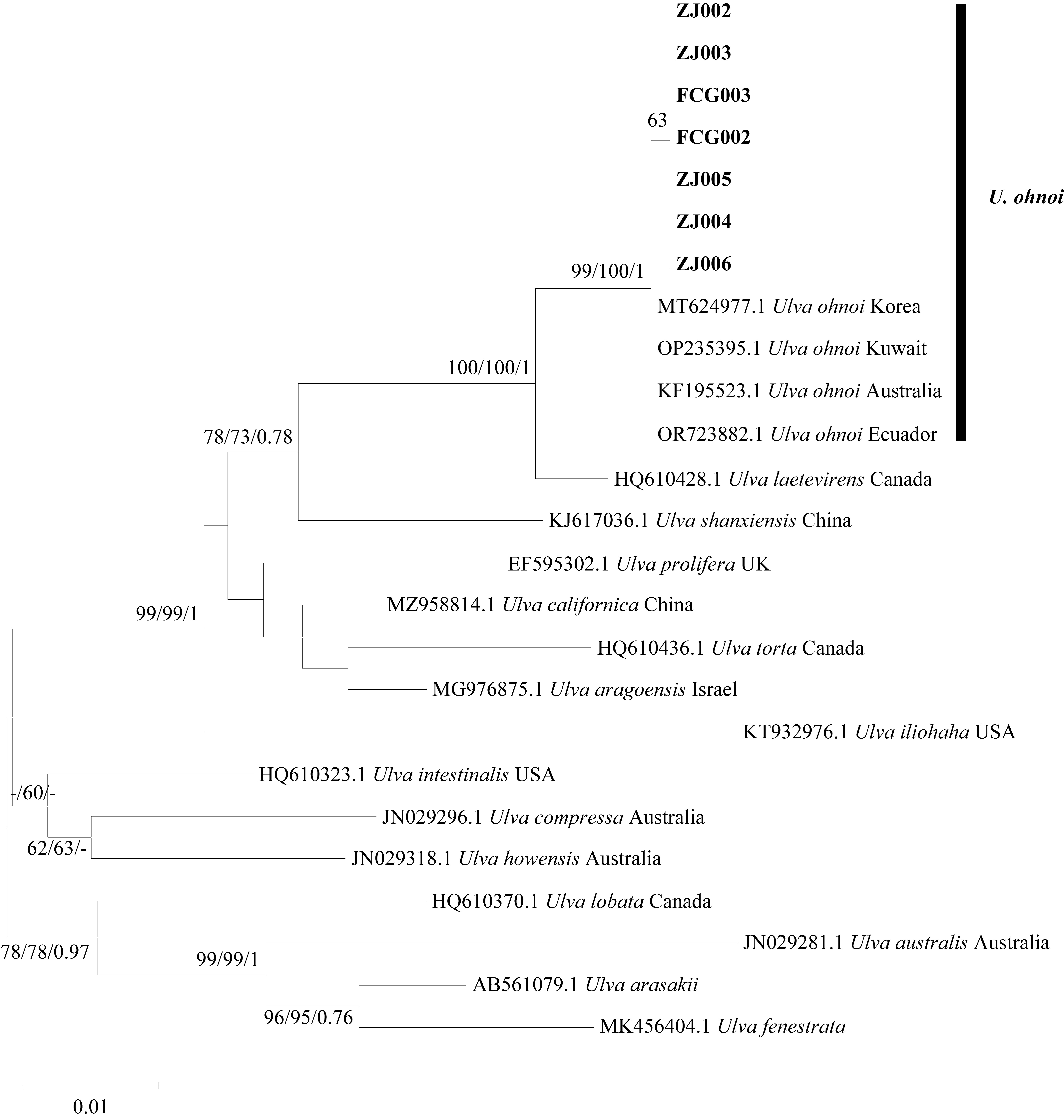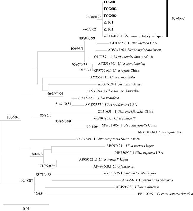 Key words: Ulva ohnoi; newly recorded species; morphology; multi-gene markers; rbcL; tufA
