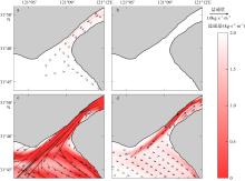 Net water flux and net salt flux across the transect S5 of Hengsha Channel during spring tide, middle tide after spring tide, neap tide, middle tide after neap tide and the full tidal cycles in February 2007 and 2021"