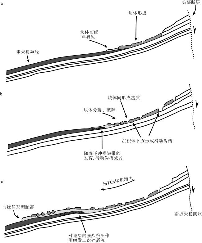 表1 各期MTCs发育的运动标志和地震相特征Tab. 1 Kinematic indicators and seismic facies characteristics of MTCs development in each stage |