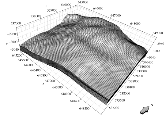 为现在的i组分摩尔数。Fig. 3 Grids of M10 structural model图3 M10层构造模型网格剖分 |